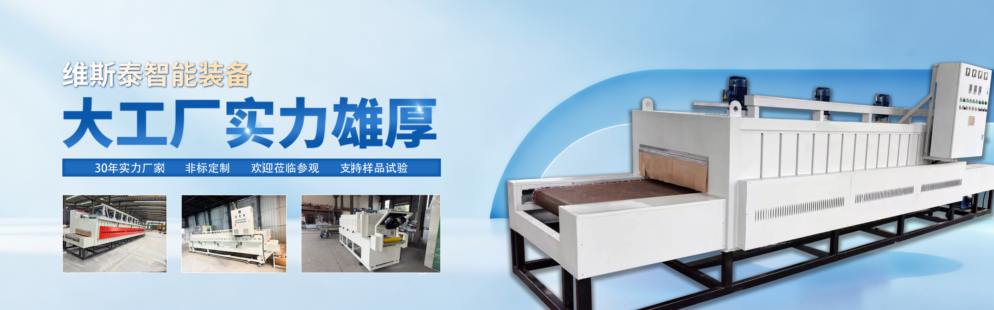 江苏维斯泰智能装备有限公司是一家集研发、生产、销售、服务为一体的制造型企业,主要产品有隧道炉系列、橡塑发泡炉、工业烘箱、电加热导热油炉、管道加热器、风道加热器等产品,公司占地三十余亩,各种机械加工设备及检测设备齐全。我们的产品广泛应用于塑料及橡胶行业、木材行业、石油及化学行业、纺织印染行业、空调行业、制药行业、机械行业、食品行业等,同时可根据客户要求专业定制,满足客户的工艺要求。江苏维斯泰智能装备有限公司秉承《诚信立足,品质制胜,不断创新》的企业文化和经营理念,通过科技研发积极创新,寻求技术上的突破,不断运用新工艺、新材料、新技术对各类产品进行智能化升级,欢迎各界朋友莅临参观、指导和业务洽谈。
